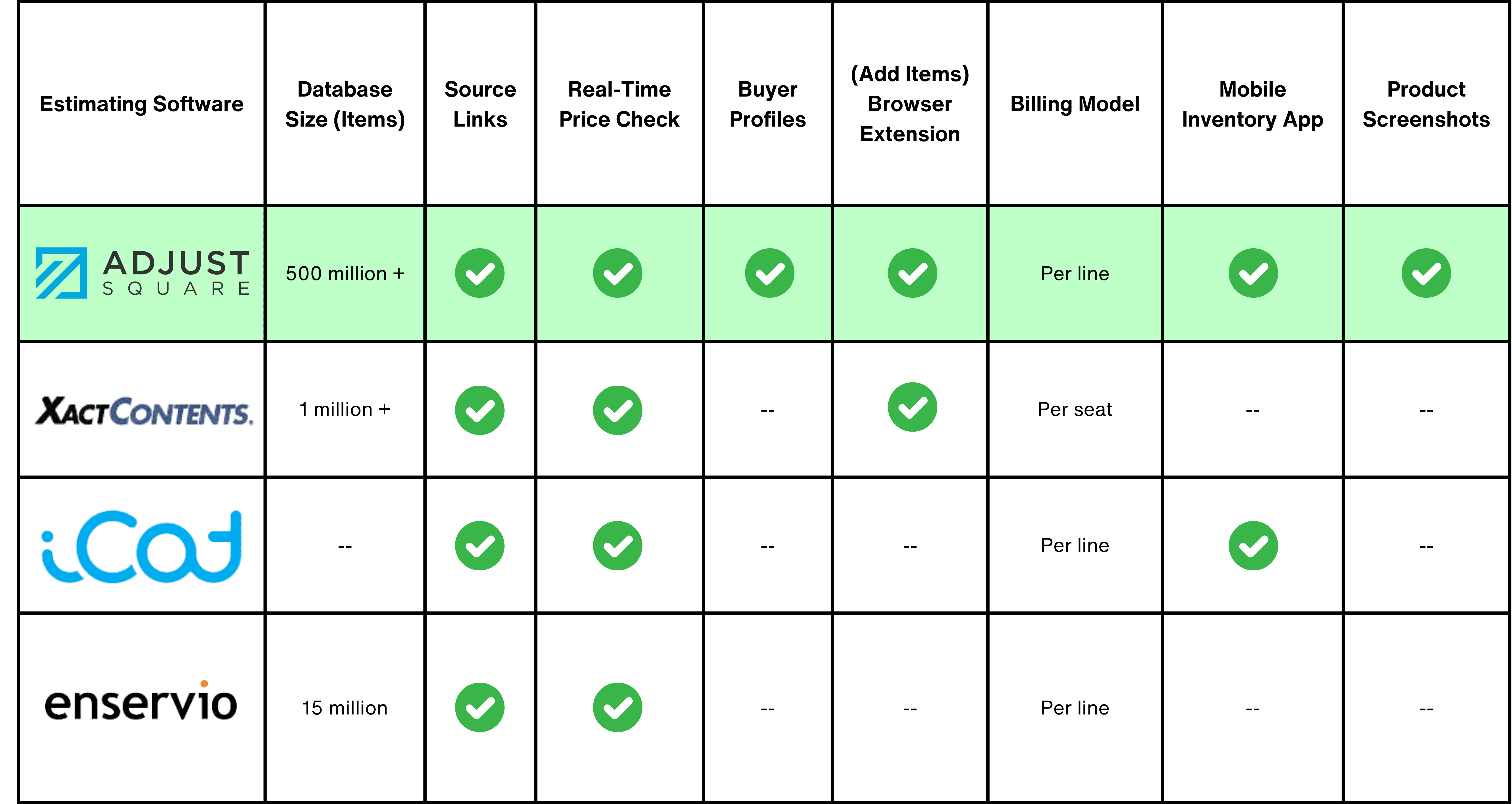 Estimating software designed for estimating residential insurance claims enables users to determine property values with greater precision and efficiency. Typically, the features of such estimating software vary among providers, with differences in aspects like processing speed, accuracy, cost, integration capabilities, and user-friendliness.
