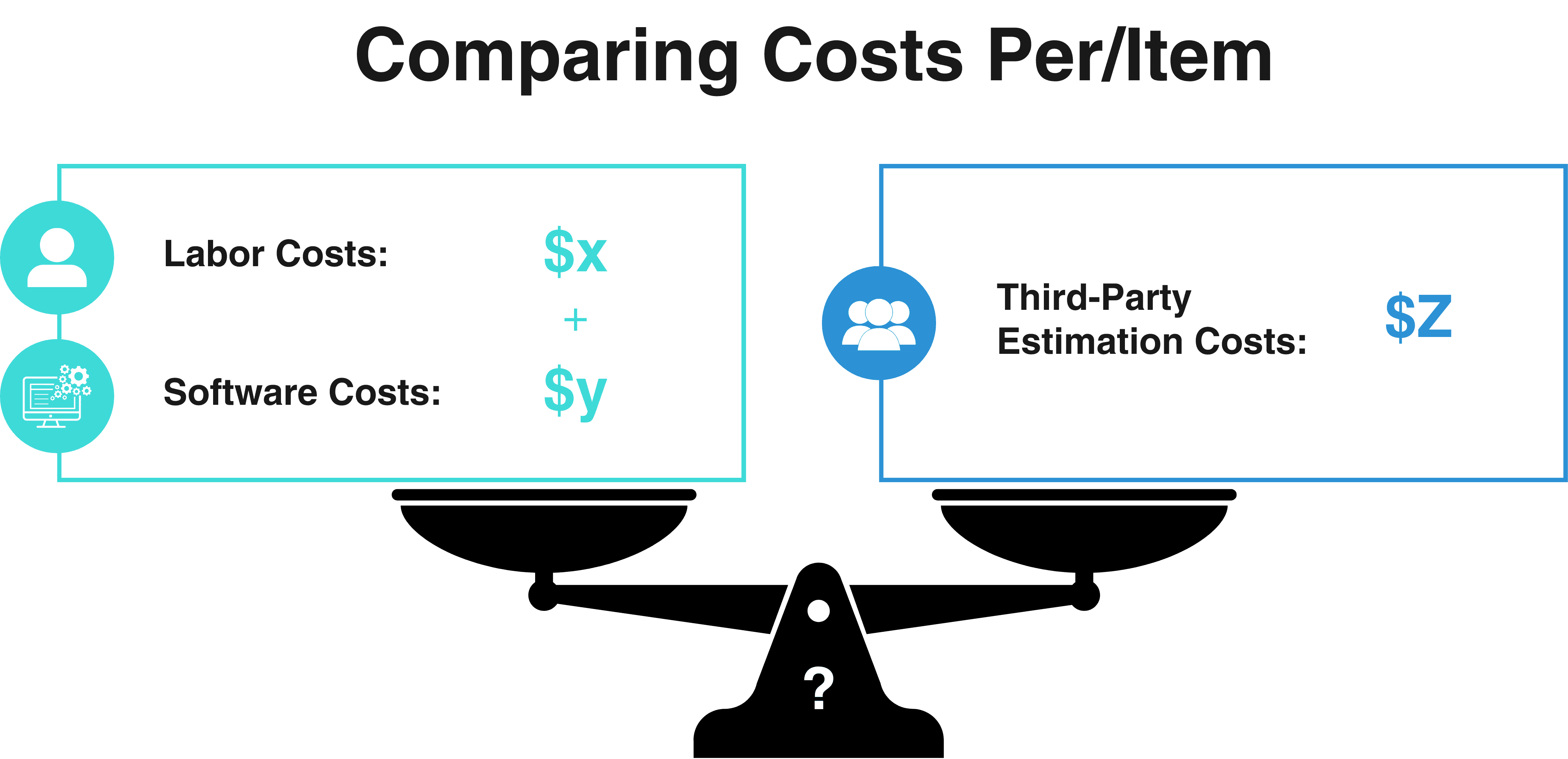 When looking for the best solution, it is essential to evaluate the expenses associated with employing a third-party estimator versus maintaining your own in-house estimation team and estimating software.